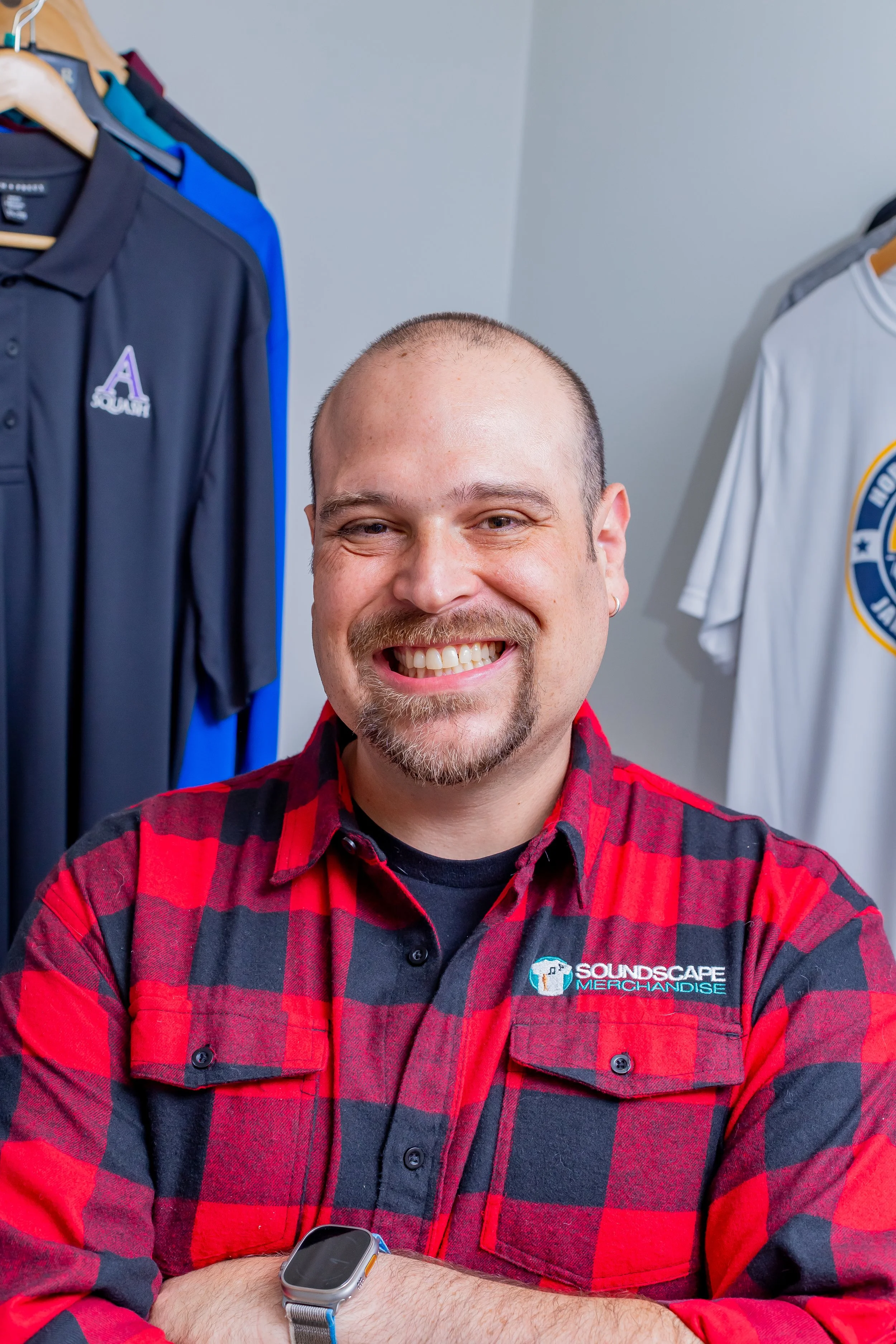 Clay keeps the gears turning at Soundscape Merchandise. From invoicing and accounting to ordering and developing systems that streamline the shop, he’s constantly problem-solving on the fly, making sure that everything runs smoothly behind the scenes. What he enjoys most is working alongside a crew of hardworking, creative people every day—and helping them bring big ideas to life.